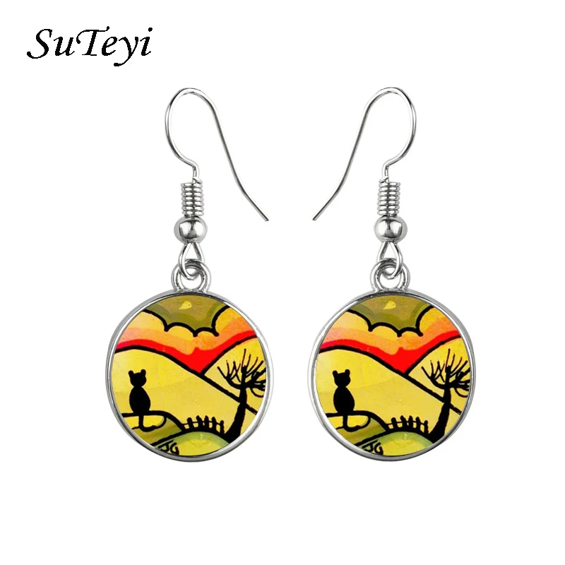 Earring Style:Art Picture Glass Cabochon Dome Earring