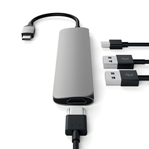 Satechi Slim Aluminum Type-C Multi-Port Hub Adapter with Type-C Charging Port, 4K HDMI Video Output, and 2 USB 3.0 Ports, portable for MacBook Pro 2015/2016, Google Chromebook 2016 (Space Gray)