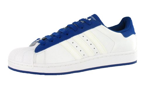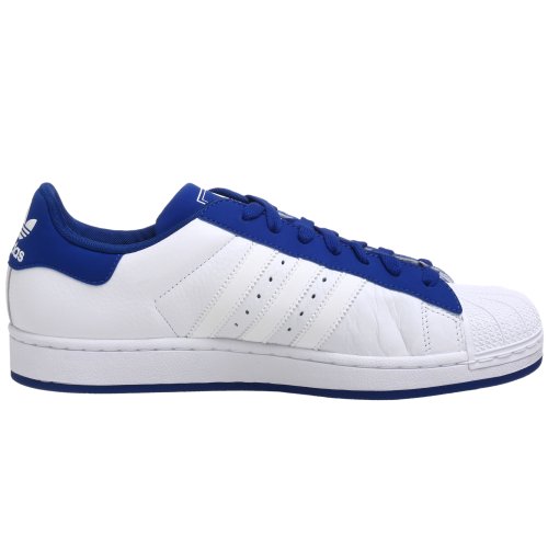 Product Description The adidas Superstar ruled the basketball court back in the early '70s. Originally introduced in 1969, the adidas Superstar was the first low-top basketball shoe to feature an all-leather upper and the now-famous rubber shell toe. It quickly became a favorite of NBA players and has been in production ever since. This updated version features a leather upper in an authentic color. Torsion System adds midfoot stability. Sculpted EVA midsole features herringbone tread. Classic court design is updated to give that classic but refined look! Features a white uppers with black stripes which really sets this shoe off. design # 096986