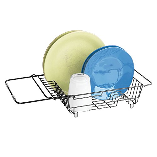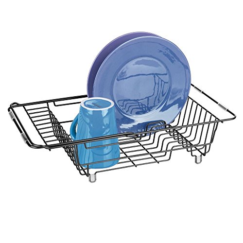 Studio : InterDesign Publisher : InterDesign Binding : Kitchen Product Description The Over Sink Dish Drainer from InterDesign is perfect for kitchens with limited counter space. Its over-the-sink option allows dishes and drinkware to drain directly into the sink to save counter space or it can sit on the counter top. It features an expandable arm to accommodate sinks of all sizes. Plastic covers on the feet and side arms prevent scratches on sink and counter surfaces. 0