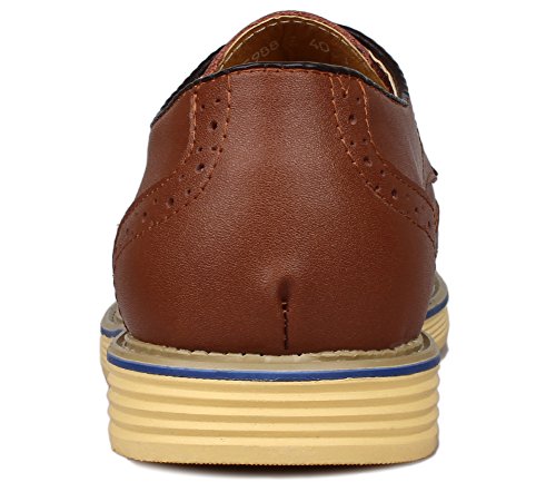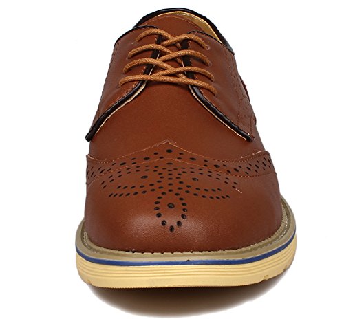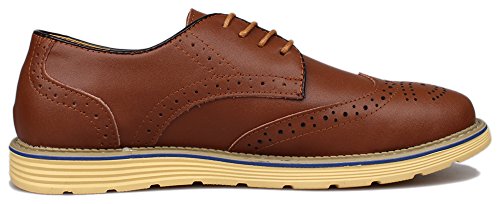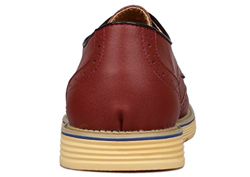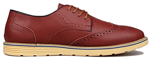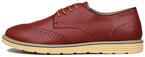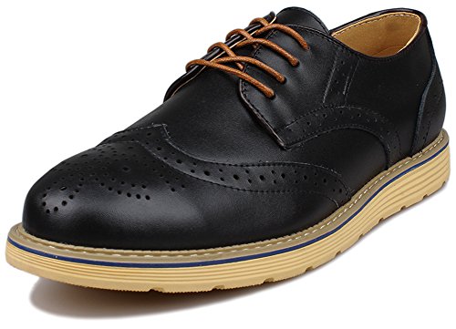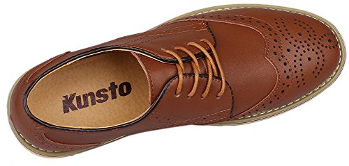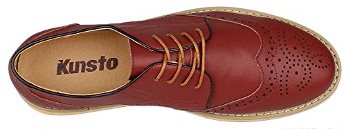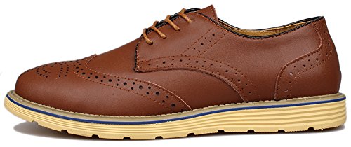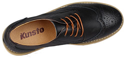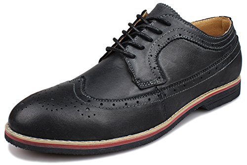 Binding : Apparel Product Description The Kunsto Men's oxfords wingtip offer a classic look with ergonomic design to provide the optimum comfort and to avoid stress or injury in walking. It's great to dress with a shirt for almost any occasion, whether formal or just casual. what's more, the waxed laces allow me to have looser laces across the top of my lower foot, and tighter up above where the ankle is. This is extremely comfortable and stylish. Full Brogue Detailing The leather lining inside is pretty soft and there is enough arch support as well. Upper material : Split Leather Lining Material: Pig Leather Sole: Synthetic Footbed: Removable footbed which is easy to take it out for washing or cleaning Out sole: Flexible slip resistant Rubber out-sole Heel type: Low-heel Width: D " Attention 1. The shoes packed in the cloth bag without box. 2. We offer 6-months warranty, that means, if you have any problem within 6-months, just message to us then you will get a new pair of shoes. 3. To help you choose right size easily, All the shoes sizes have been converted to US Size, wish you have a great buying experience 0 |