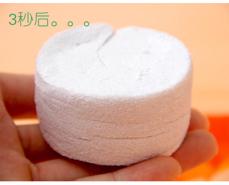 压缩状态下直径只有6CM,入水三秒,立即变为一条30*60左右的毛巾,相当实用噢~~~