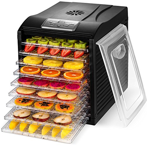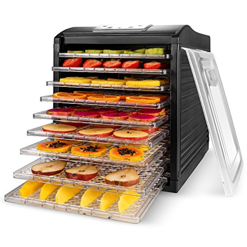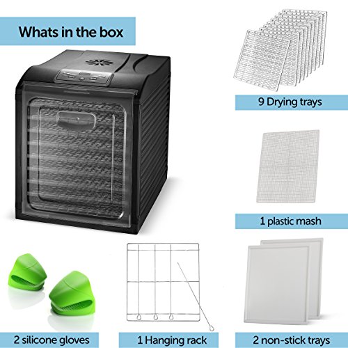 MAGIC MILL Food Dehydrator, 9 Drying Racks, 8 Digital Preset Temperature Settings and Timer with Automatic Shutoff - 1 Fine Mesh Sheet, 2 Fruit Leather Trays, 1 Hanging Rack, 1 Set Ovens Mitts