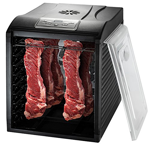 - DIGITAL THERMOSTATE AND TIMER help you choose your desire temperature and time. Up to 19.5 hours dry time. Choose drying temperatures from 95º F to 158º F. Countdown timer.