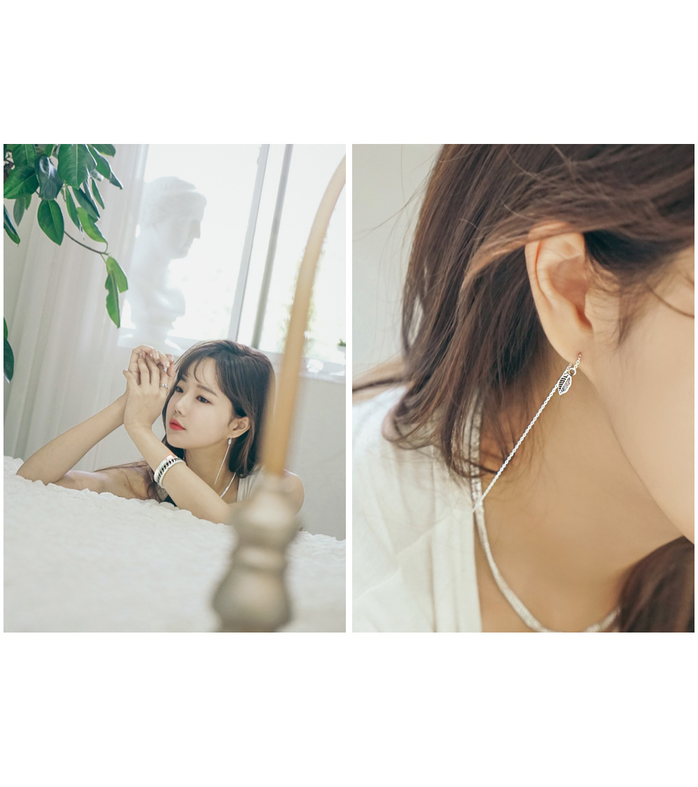 나뭇잎 귀걸이는 거뭇거뭇 유화처리를 하여 에스닉한 느낌을 자아내요.
