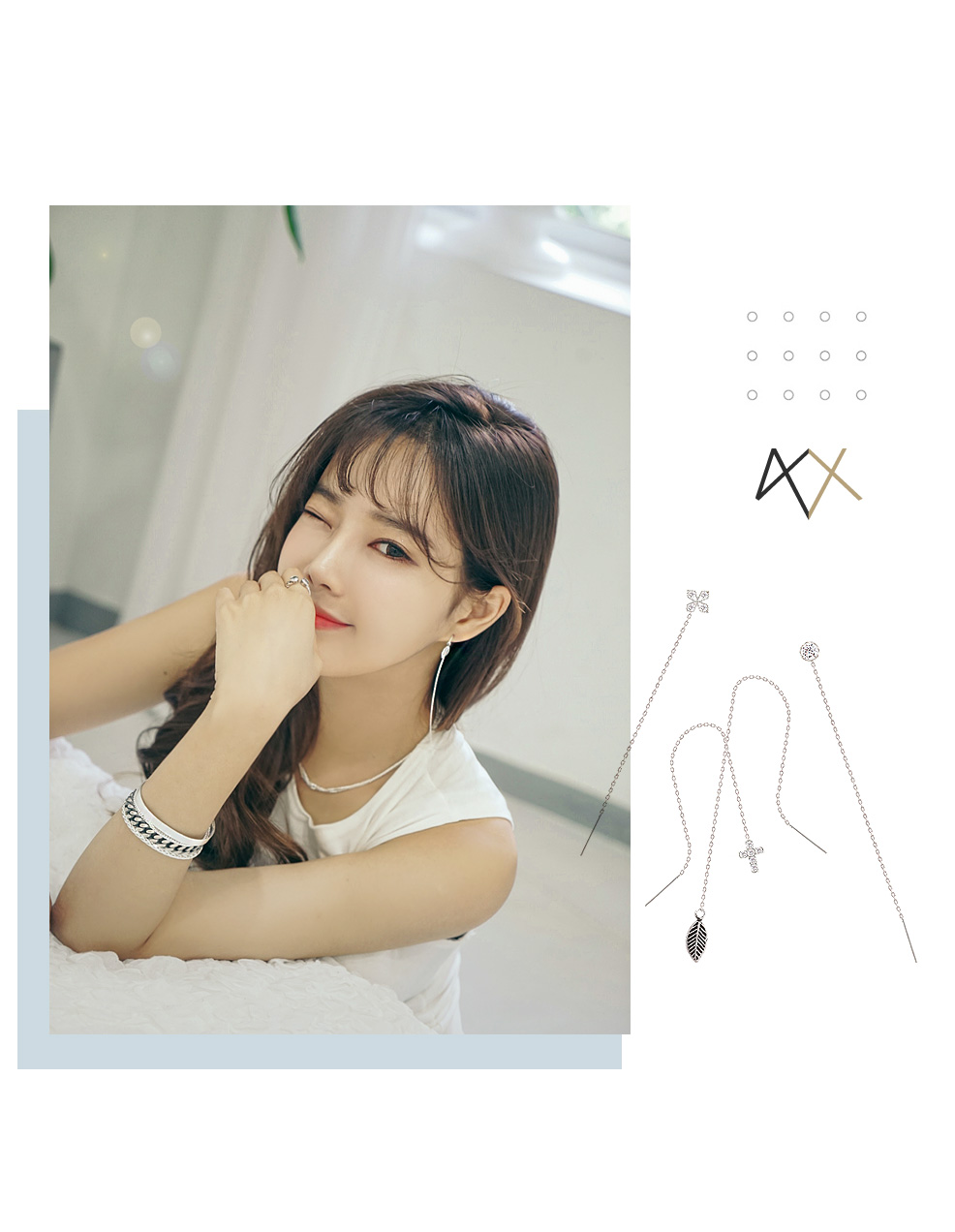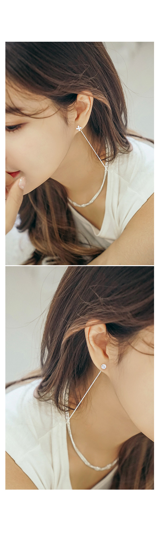 양쪽 귀에 귀걸이를 착용할 때 체인이 내려오는 길이를