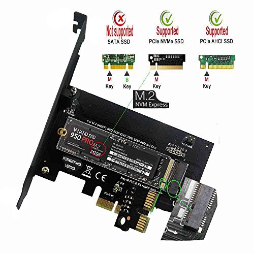 Support Motherboard PCIe3.0 x4 ,x8 ,x16 Bus Slot,Backward Compatible PCI-E2.0 x4 ,x8 ,x16 Bus Slot , PCI-E1.0 x4 ,x8 ,x16 Bus Slot.Please Note: Different Interface Bandwidth will Affect theSpeed,Please Confirm that Motherboard Bus Slot is Fit.,Supports Width 21mm Length 80mm, 60mm, 42mm 30mm M.2 NGFF PCIe SSD