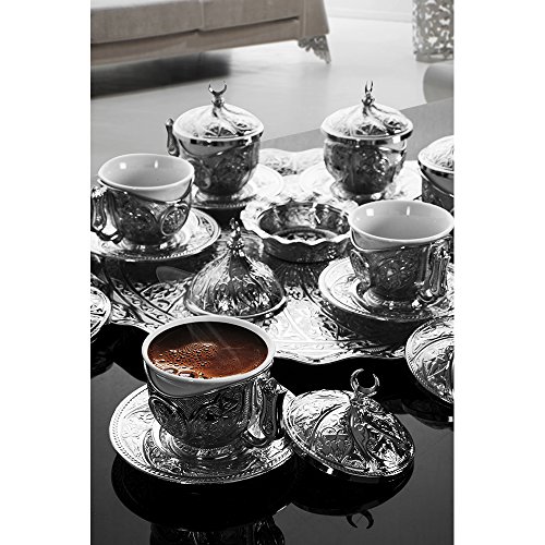 -. Title : Silver Turkish Coffee Set for Six Person with Free 100 Gr. Turkish Coffee