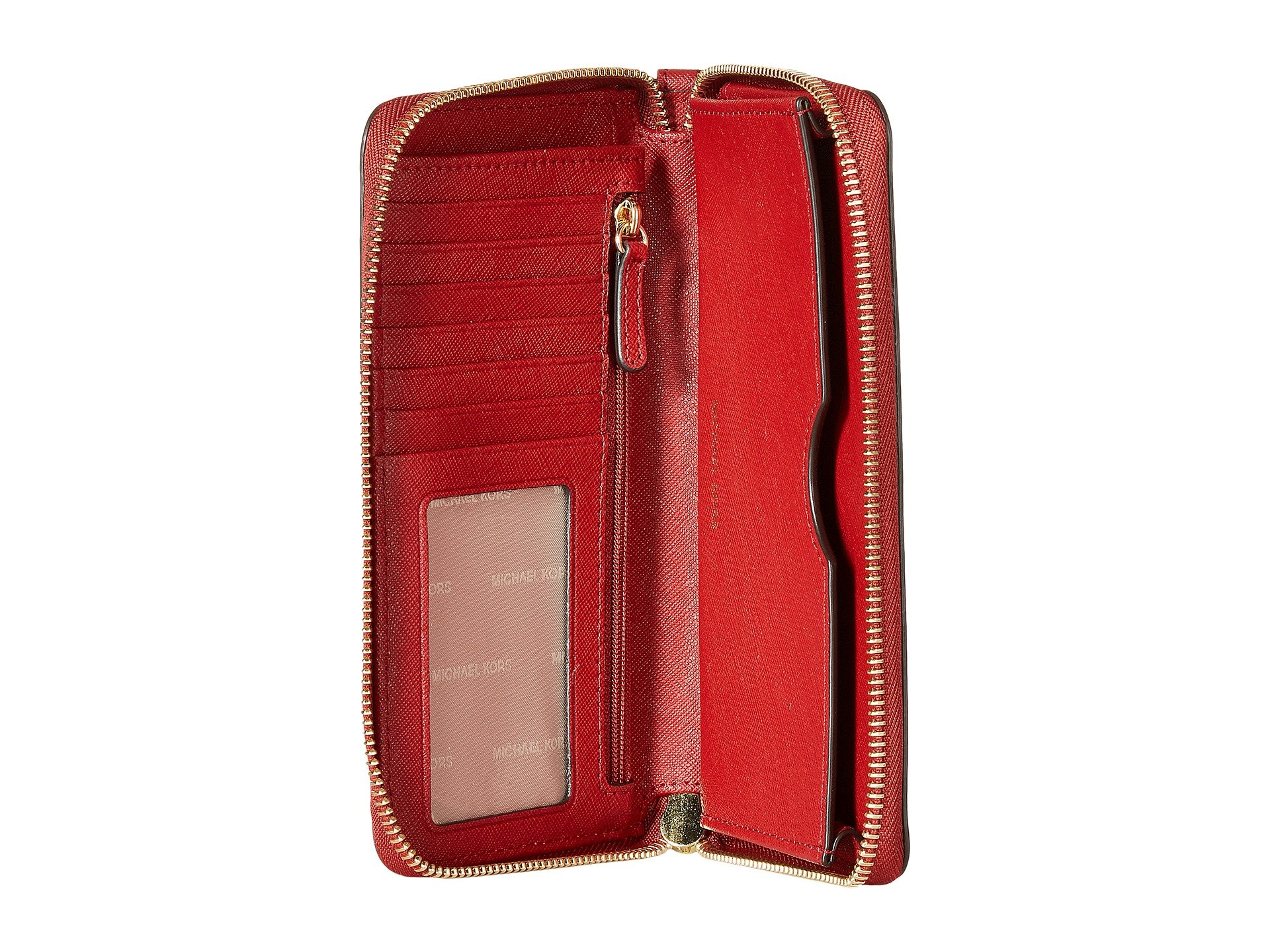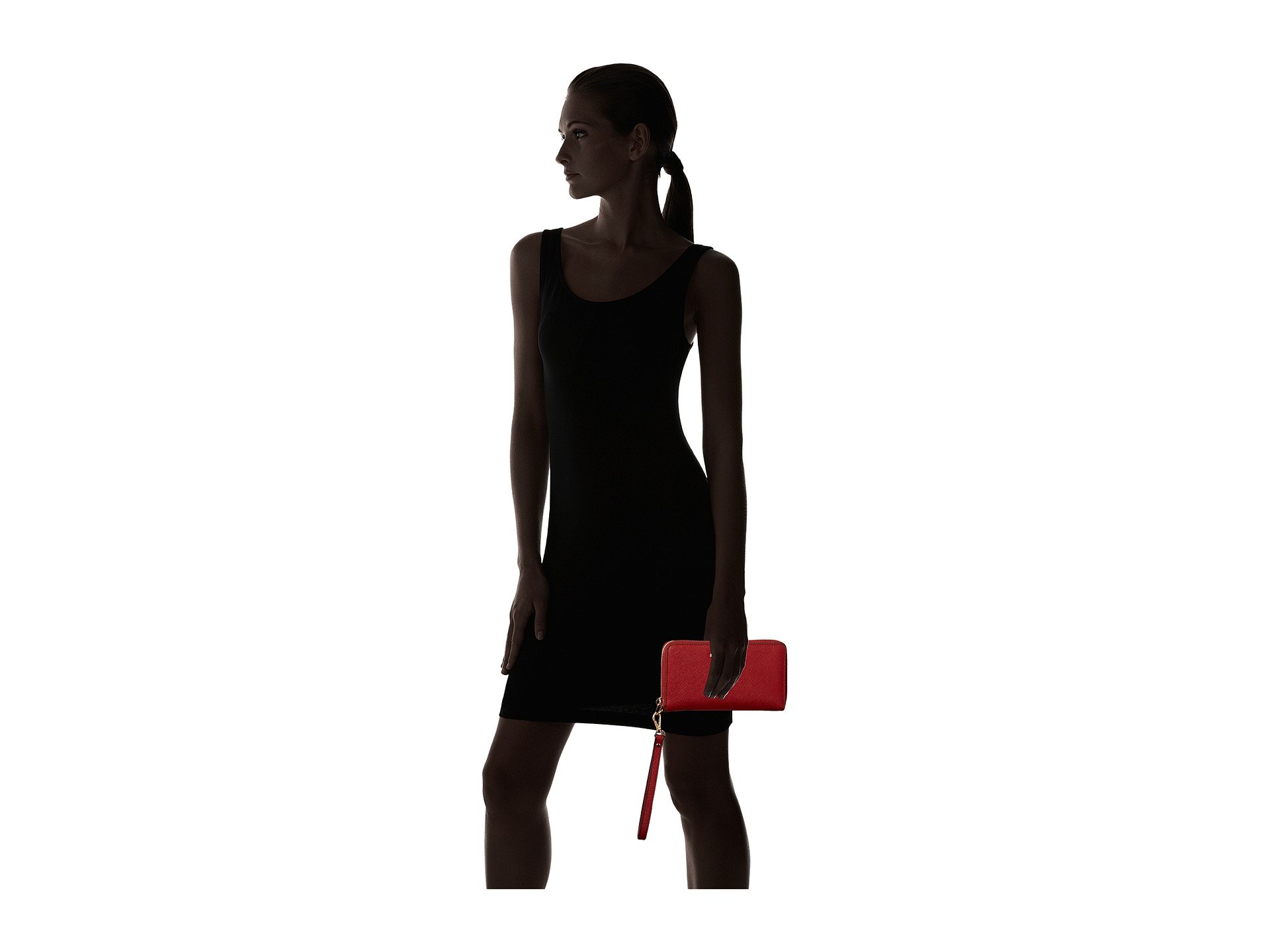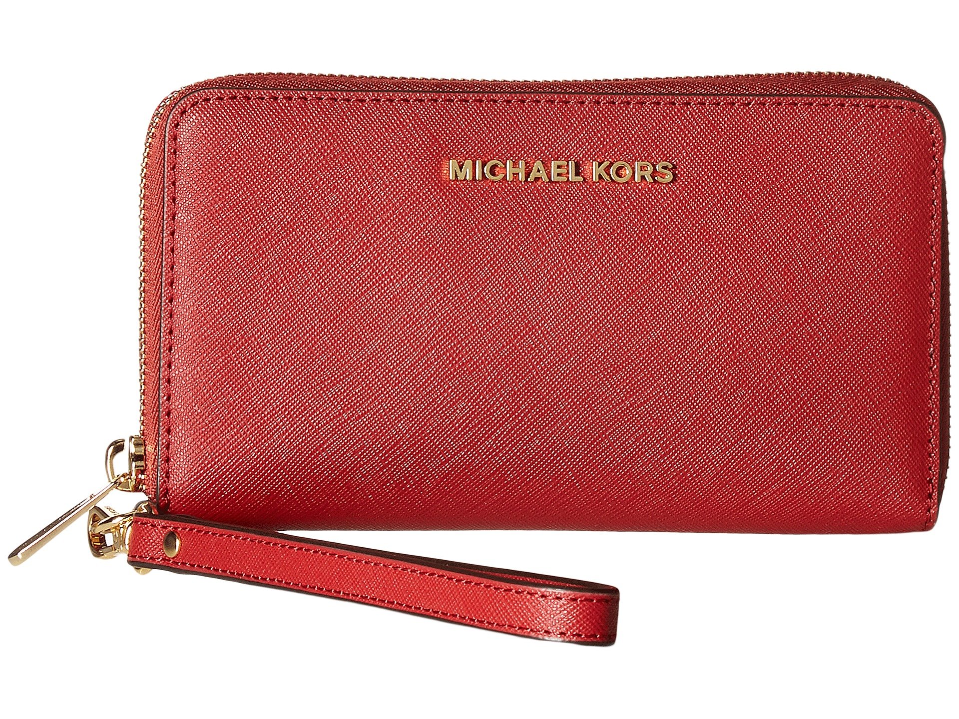 | Product Information SKU: #8753162Get ready to take flight with fierce fashion, the Jet Set Travel Large Flat MF Phone Case.Made of leather.Zipper closure.Detachable wristlet strap.Signature logo hardware detail in front.Lined interior.Interior zip pocket.Interior phone slip pocket.Five interior credit card slots with ID window.Imported.This product may have a manufacturer's warranty. Please visit the manufacturer's website or contact us at warranty@support.zappos.com for full manufacturer warranty details.Please note, the hardware color and interior lining may differ from the color shown in the photo.Measurements: Bottom Width: 6 1?4 in Middle Width: 6 1?4 in Depth: 1 in Height: 3 1?2 in Handle Length: 12 in Handle Drop: 6 in Weight: 6.4 oz |