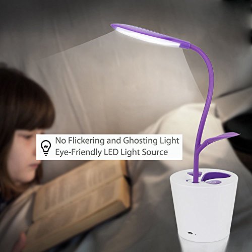 LED Flexible Desk Lamp Kids Lamp Gooseneck Table Lamp Dimmable Reading Lamp Book Lamp 3 Brightness Level Touch Control Lamp USB Rechargeable Night Light with Pencil Holder (Purple)