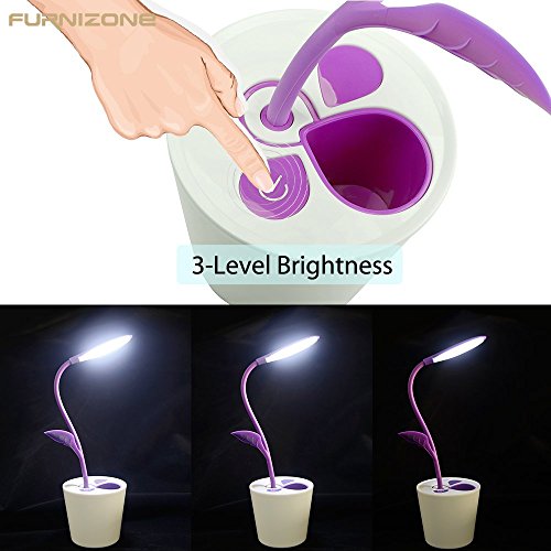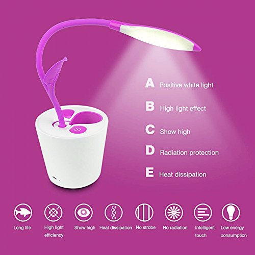 Touch Sensor Dimmable Control: Plant shape lamp with touch-sentitive switch, 3-level adjustable brightness control. You can choose the most suitable brightness for yourself.It also have a pen holder which can save space, can use at office, bedroom, school etc.
