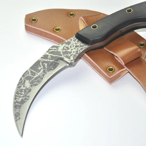 상품 내용 사냥 칼 440c 블레이드 나무 핸들 캠핑 생존 전술 고정 나이프 사냥 포켓 도구 가죽 칼집