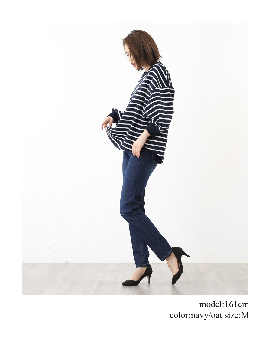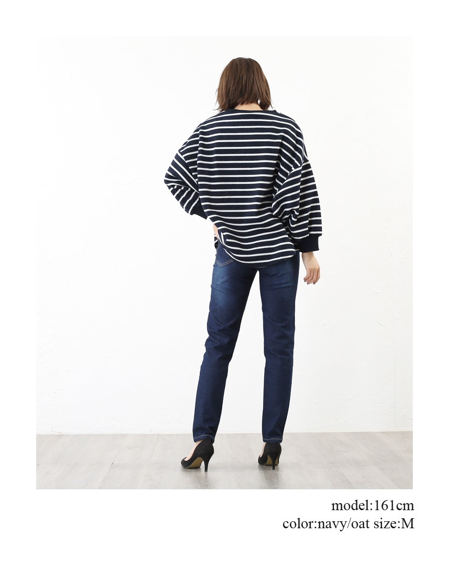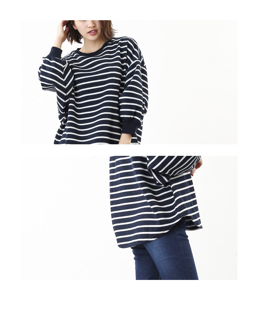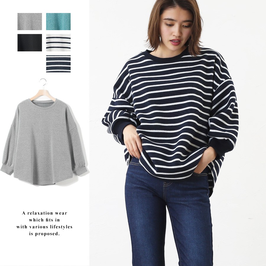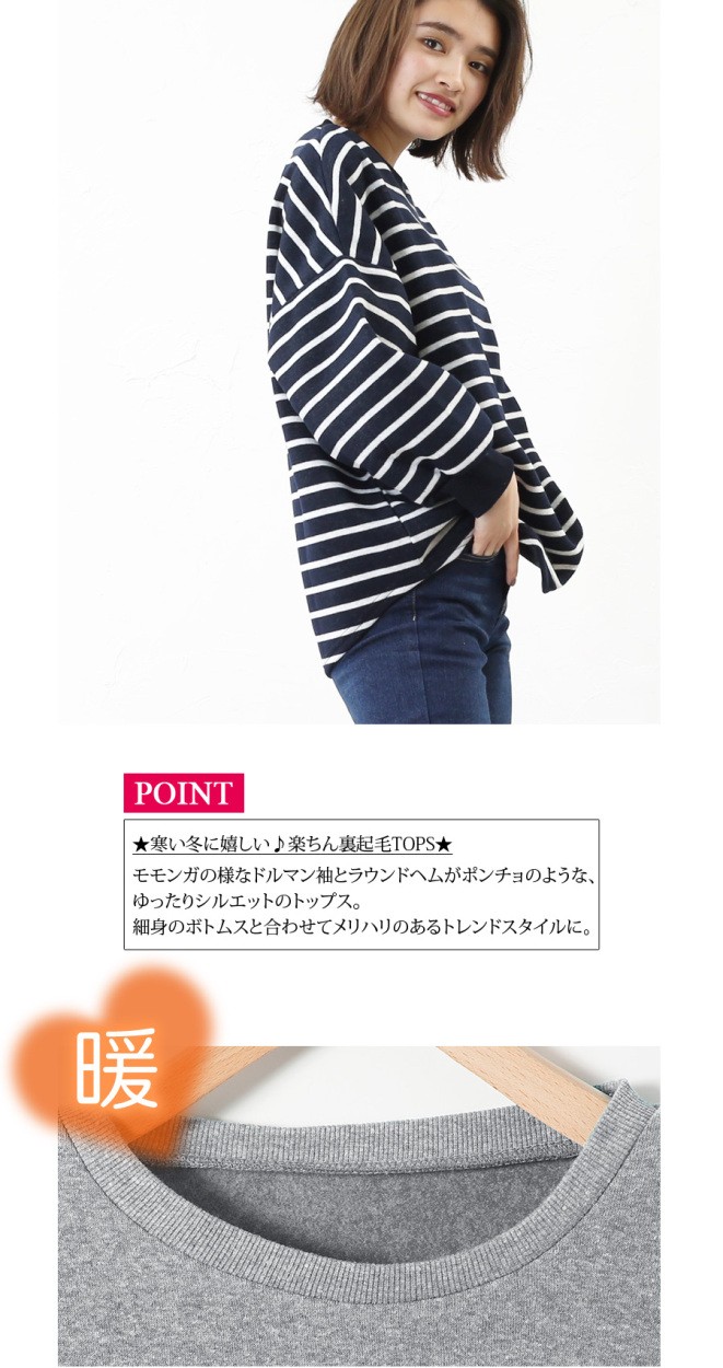 【カットソー 裏起毛 レディース ドルマンスリーブ 長袖 ボーダー 無地 Tシャツ クルーネック 秋 冬 秋冬 ゆったり 大きいサイズ mitis】