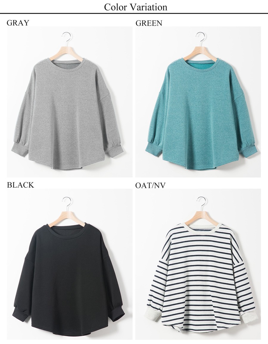 ゆったりと幅広のドルマンスリーブはもちろん、袖先がリブ切替になっていてよりぷっくりとした丸みのあるシルエットが楽しめるのが◎裾元はふんわりと丸いラウンドヘムになっていて着るだけで可愛くしてくれる大人裏毛ドルマンプルオーバーです。