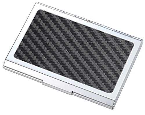 Product Description Black Carbon Fiber Like Pattern - Metal Chrome Plated Business Card or Credit Card Case Holder W/ Inside Clip Black Gift Box For Him Her 0