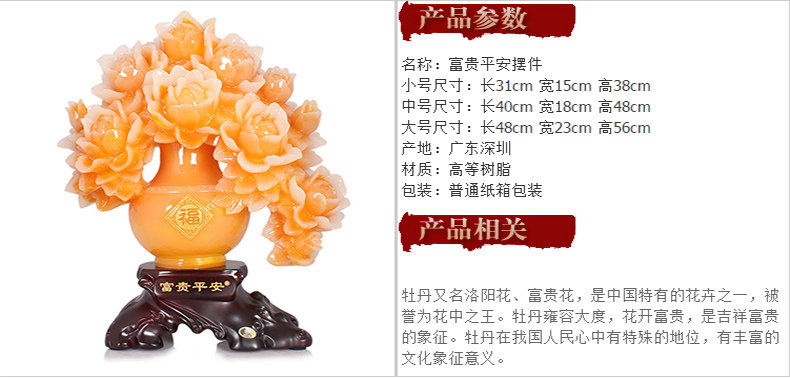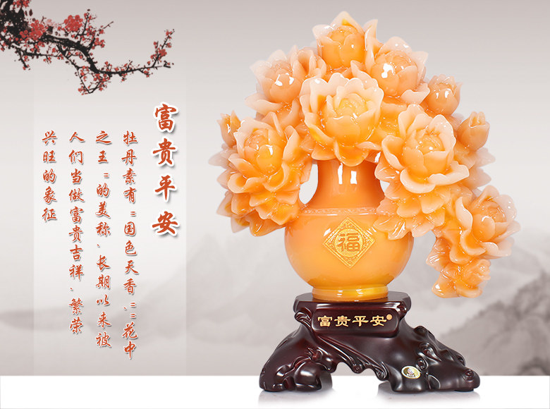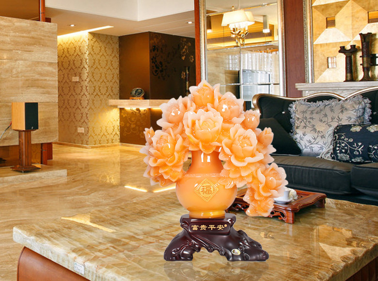 牡丹花花瓶摆件创意家庭客厅摆件装饰品工艺品结婚礼物乔迁礼品
