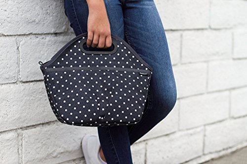 The wide base of this lunch bag allows increased capacity and an exterior slip pocket stores napkins, utensils and personal items