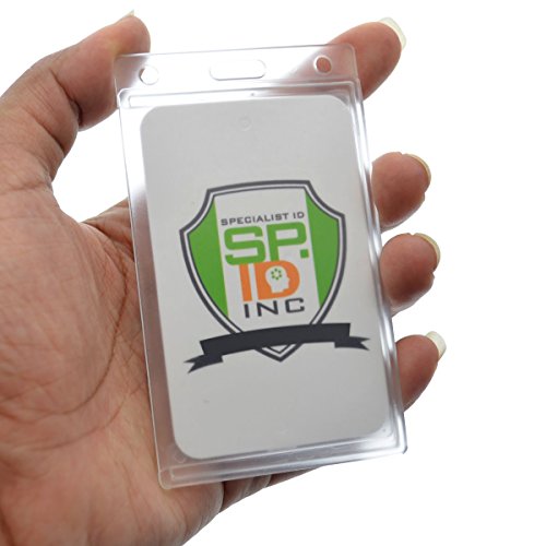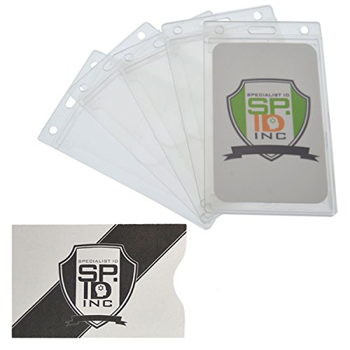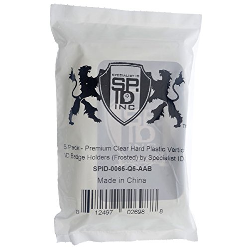 5 Pack - Premium Clear Hard Plastic Vertical ID Badge Holders (Frosted) by Specialist ID