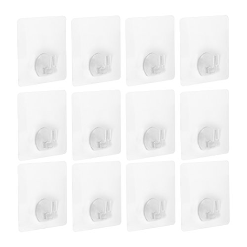 Nail Free Hook, Elongdi Transparent Adhesive Hooks [12 Pack] No Scratch Wall Hooks, Waterproof and Oil-proof for Wall and Ceiling