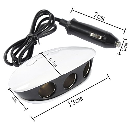 Car Charger 3 Way Car Socket Cigarette with 2 Port USB Cigarette Lighter Adapter for Android iPhone Smartphones Tablets and More (White-2)