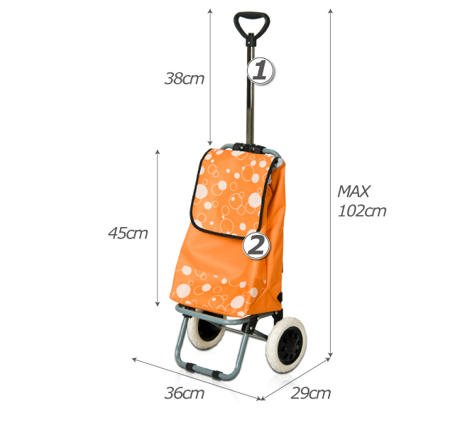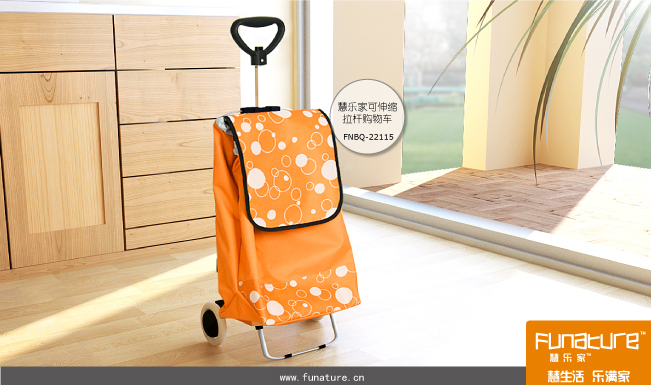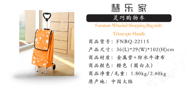 Funature慧乐家可伸缩拉杆购物车FNBQ-22115(行李车 手拉车 可折叠便携买菜车 可伸缩 手推车 36*29*102cm 橙色圆白点)