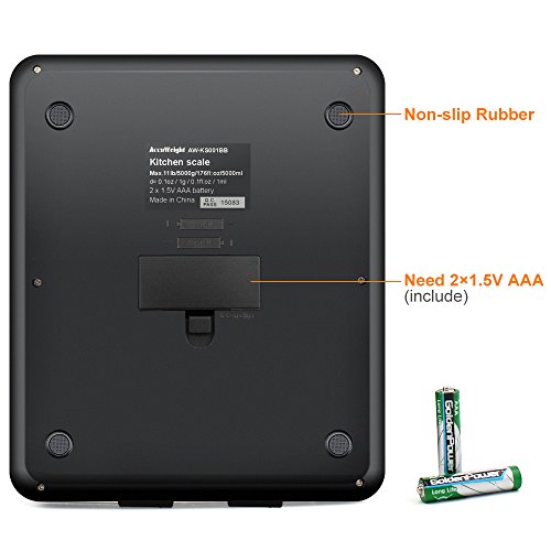 AccuWeight Digital Multifunction Food Meat Scale with LCD Display Perfect for Baking Kitchen Cooking, 11lb Capacity by 0.1oz, Tempered Glass surface, Black