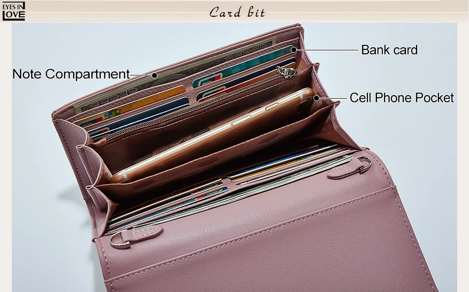 Interior:Interior Compartment,Interior Slot Pocket,Interior Zipper Pocket,Card Holder,Note Compartment,Photo Holder,Cell Phone Pocket,Zipper Poucht,Coin Pocket