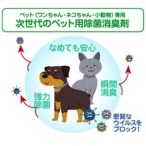 トイレの臭・ゲージの清掃・散歩の後の肉球・耳のケア・歯茎の歯周病ケア・食器・おもちゃの除菌にお使い下さい。