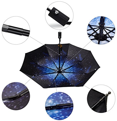 -. Title : RENZER Compact Travel Umbrella with Windproof Lightweight Starry and Blossom Automatic Foldable
