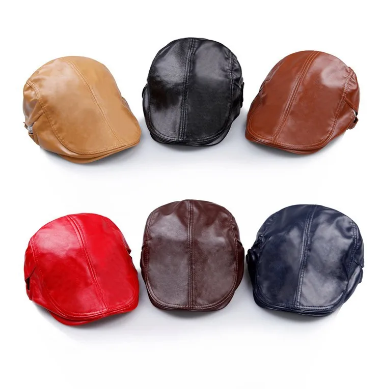 | [해외]딱! 남녀 2017 새로운 봄 boina 인공 가죽 순수한 색상 남자 cap 남자 모자 베레모 패션 모자 gorro |