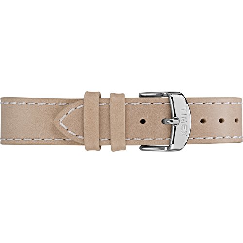 Specialists in the art of timekeeping. A classic in the making, this watch features a carefully stitched sand-colored leather strap is paired with a silver-tone dial and case for a truly timeless look. This Timex New England watch is water resistant to 30 meters (99 feet).