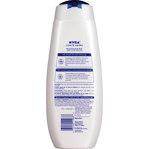 Experience the harmonious sensation and calming scent of this NIVEA cream oil body wash. It gently cleanses skin, leaving you and your body feeling beautiful all day long. How it works Enriched with moisturizing shea butter and conditioners, this exquisite cream oil creates a supreme lather that glides over skin and rinses smoothly. The calming scent of vanilla blossom creates the perfect balance for your senses. Your skin is left moisturized long after the shower. Developed with NIVEA’s breakthrough Hydra IQ Technology to provide your skin with intense long-lasting moisturization throughout the day even beyond the shower. For a film-free skin feel and smooth, touchably beautiful skin!Feature