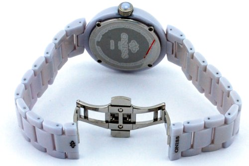 Oniss #ON7703-LC Women's Girasol Crystal Accented MOP Dial Lavender Ceramic Watch