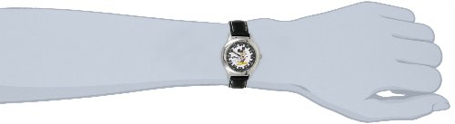 Keep track of time with this officially licensed Disney stainless steel kid's time teacher watch by ewatchfactory on your wrist. The timepiece displays artwork from your favorite Disney character on the face, and is designed with labeled "hour" and "minute" hands to help young ones learn how to tell time. This classic watch has a polished and matte steel finish and a precision Japanese movement for accurate time keeping and a 1 year manufacturer warranty.Feature