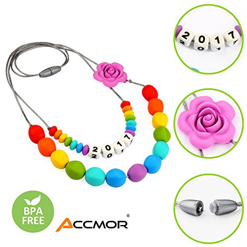 SOOTHES TEETHING PAIN: Forget about toxic remedies like teething gel and tablets. Soft, chewy beads provide natural pain relief for your baby's teeth. It can also be frozen or placed in the freezer so your little one can chew on cold beads. Wear the Accmor meaningful teething necklace around your neck as a stylish multi-purpose accessory. The fashion statement transforms into a soothing, entertaining chew toy for your baby as you hold them in your arms.