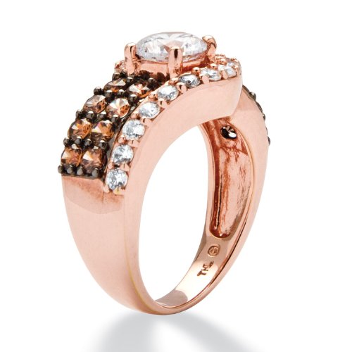 -. Title : Round White and Chocolate Cubic Zirconia Rose Gold-Plated Sterling Silver Swirl Ring