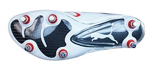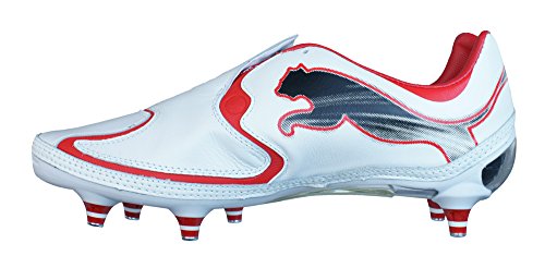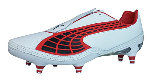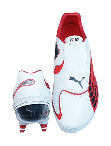 Binding : Apparel Product Description Puma V1.10K SG Mens Leather Football Boots / Cleats - One of the lightest leather football boots available, the Puma v1.10 K SG features a supersoft and ultrathin K-Leather upper designed to give you the confidence to be your fastest!The lacecover creates a smooth kicking surface and a unique look whilst the injected TPU application on the formstrip adds stability to these Puma football boots.A single piece outsole provides stability and support, utilizing a carbon fibre plate in the forefoot, minimizing weight and increasing the reactivity in the flex area.The Puma v1.10 K football boots feature the second generation of PUMA's revolutionary UNI technology. This construction provides an industry leading fit by perfectly replicating the unique PUMA AptoLast.Completed with 6 conical aluminium tipped screw-in studs which ensure smooth ground penetration by providing optimal traction, manoeuvrability and stability, these Puma v1.10 K football boots are ideal for use on soft natural surfaces. 0