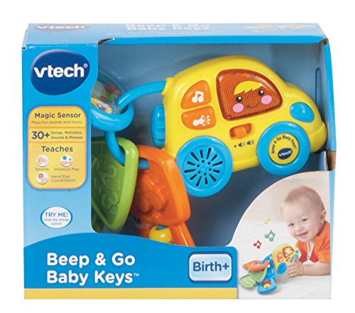 Start your learning engines with the Beep & Go Baby Keys from VTech. Colorful textures, buttons and playful sounds stimulate baby's senses and get them cruising through playtime fun. Shake the rattle, toot the horn and sing with me.