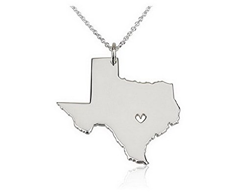 -. Title : State Necklace Texas State Charm Necklace Sterling Silver State Necklace with a Heart