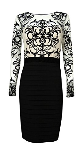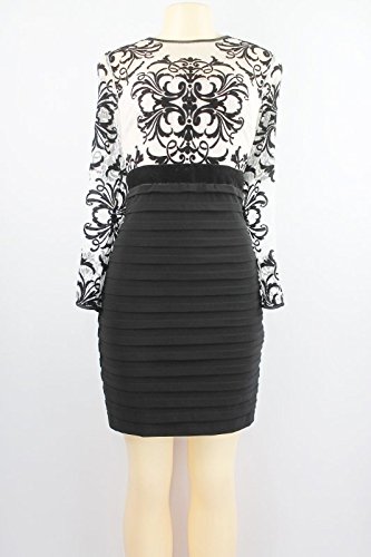 Lined top: 100% Polyester Concealed back zipper Illusion neck and sleeves Flocked lace top, pleated jersey skirt Velvet waistline Brand : Betsy & Adam EAN : 0883971301891 Product Dimensions(LxWxH) : 36x31x3cm ; 363 g