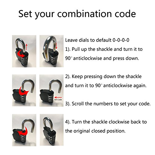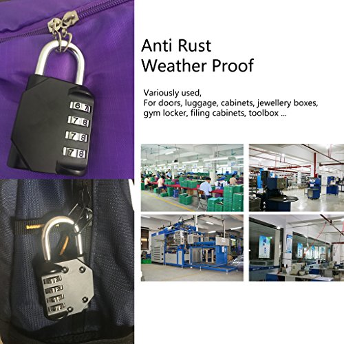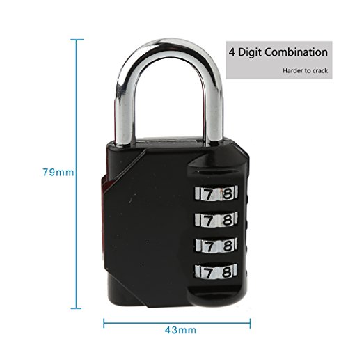 Combination Lock - Padlock, 4 Digit Code, Anti Rust and Weather Proof, For Doors, Luggage, Cabinets, Boxes, Filing Cabinets, Toolbox - Black
