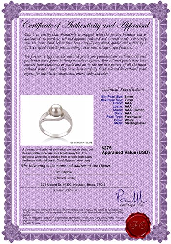 -. Feature : Included FREE with your cultured pearls ring is an Appraisal Certificate prepared by a Pearl Expert describing in detail your ring size, color and body shape. A color picture of your ring is shown on each certificate to ensure carefree insurance claims should those ever arise. It is a wonderful keepsake that shows you truly care. / Create a WOW! Experience with a FREE matching gift box. Our boxes are exclusively designed for PearlsOnly to gently hold your cultured pearl ring during shipping and also to be breathtaking when your cultured pearl ring is unwrapped and opened. With a focus on detail and elegance, the overall packaging from outside wrapping to inside, creates an unforgettable opening experience. / Easily care for your cultured pearls ring, with a FREE silky storage pouch to protect your cultured pearls ring when you are not wearing it. Although cultured pearls are very easy to take care off, we do include a FREE Pearl Care Card, so that you can easily know how to best take care of your cultured pearls ring to keeps its value and beauty. / We want you to be 100% satisfied with your purchase and that is why we offer 30-day returns on all of your purchases. Returns are easy and should you need to return or exchange an item, our customer care team is ready to assist you around the clock. And with a huge selection of Freshwater Cultured Pearls, Japanese Akoya Cultured Pearls, Saltwater Cultured Pearls, Tahitian Cultured Pearls and South Sea Cultured Pearls you can find so many things to suit your taste.