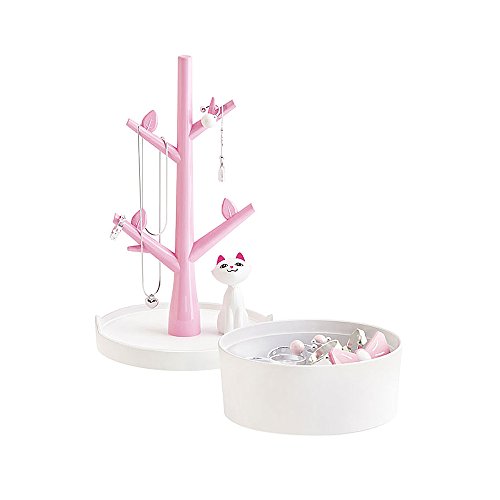 -. Feature : Size: 4" x 4" x 7.8" - Material: ABS. / This jewelry holder is a branch shape design with an adorable little cat. / Hang your jewelry at random on the branches of the jewelry organizer tree, easy to find. / Multi-function selections, the jewelry box at the bottom can be used to store rings, bracelets, necklaces, and other items. / Include 1 jewelry organizer. All girls, women, regardless of age will love this pretty jewelry holder.