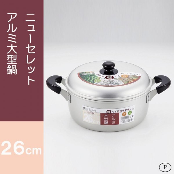 | アルミ鍋は熱伝導が高く、同サイズの鉄製鍋に比べて軽くて使いやすいのが特徴です。表面は薄いアルマイト被膜を作る処理(アルマイト加工)を施してあるので酸化・腐食しにくく、光沢も長持ちします。 |