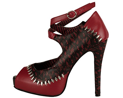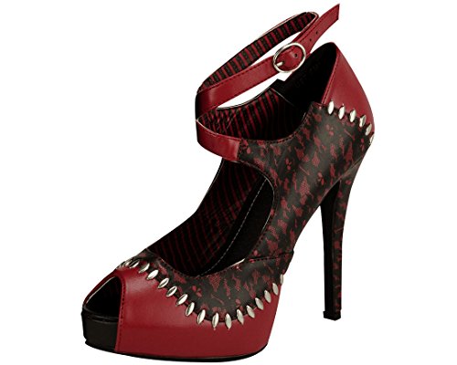 Studio : T.U.K. Publisher : T.U.K. Binding : Apparel Product Description Last few left! Get them before they're gone for good! Get ready to creep into the moonlight with these sexy scary 5 inch sky-hi heels from our ‘Mommy's Little Monster' collection. These T.U.K. platform sky-hi heels feature burgundy man made leather with silver metal stitches and black skull lace print. An across the ankle strap give these platform ski-hi heels to finishing touch. Vegan friendly. T.U.K. Original Footwear has been creating bold, original footwear for men women since 1991. Footwear inspired by bands, artists, fashionistas and individuals with eclectic tastes, continually providing creative style with an original edge. 0