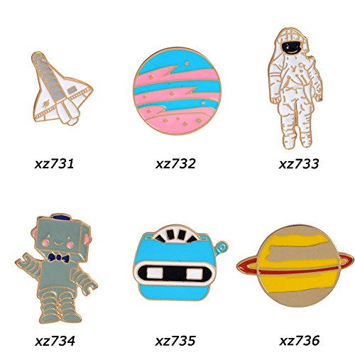 Product DescriptionFeature: Aircraft Astronaut Rocket Space Shuttle Planet Metal Brooch Pins T-shirt Collar Badge Corsage Jewelry. Fashion and easy to DIY decorate as you want. Accessory perfect for sweater, scarf, head scarf, dress, suit, bag, hat etc. Material: Alloy. Size: As picture. 7 Different Styles for your choice. Package Includes: 1 Pc * Brooch. NO Retail Box. Packed Safely in Bubble Bag!0