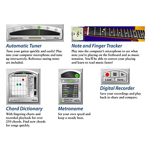 Studio : eMedia Publisher : eMedia Binding : Electronics Product Description The eMedia Teach Yourself Acoustic Guitar Pack Deluxe comes with everything you need to learn to play guitar. You get one of the best beginner acoustic guitars available, featuring a neck that plays easy, a cutaway body to make it easier to reach high frets, and a full, resonant sound that makes you love playing. Plus, you get both award-winning eMedia Guitar Method and eMedia Intermediate Guitar Method guitar lesson software to take you from beginning guitar student to confident player. You even get guitar accessories such as a strap, strings, and picks! Learn how to play the guitar the easy way with interactive, guitar lesson software that listens to you play and teaches you over 150 included songs across a multitude of styles. Learn hits made famous by Bob Dylan, Steve Miller, the Rolling Stones, and others. As a bonus, you get the eMedia Essential Acoustic Guitar DVD that can be used in any DVD player for times when you are away from a computer. 0