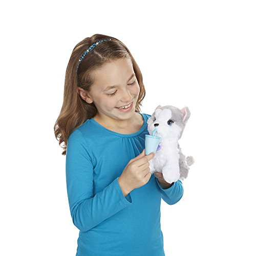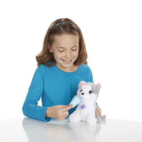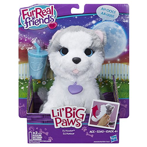 What's better than your very own soft and cuddly dog? A dog pet who will howl at the moon with you! This sweet little DJ Howler pet is just like a real dog, and she woofs and howls to show you how happy she is to see you. When playtime is over you can hold her close and feed her from her cup. Whenever you want, it's always a good time with your DJ Howler pet! FurReal Friends and all related characters are trademarks of Hasbro.Feature