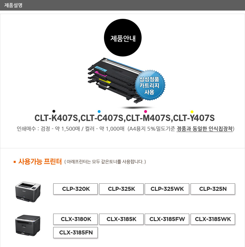 clt407s CLT-K407S CLP-325K CLP-325WK CLX-3185WK
