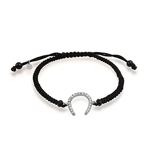 -. Title : ブリングジュエリー スターリングシルバー925 ラッキーチャーム 馬蹄 CZ キュービックジルコニア オニキス マクラメ ブレスレット